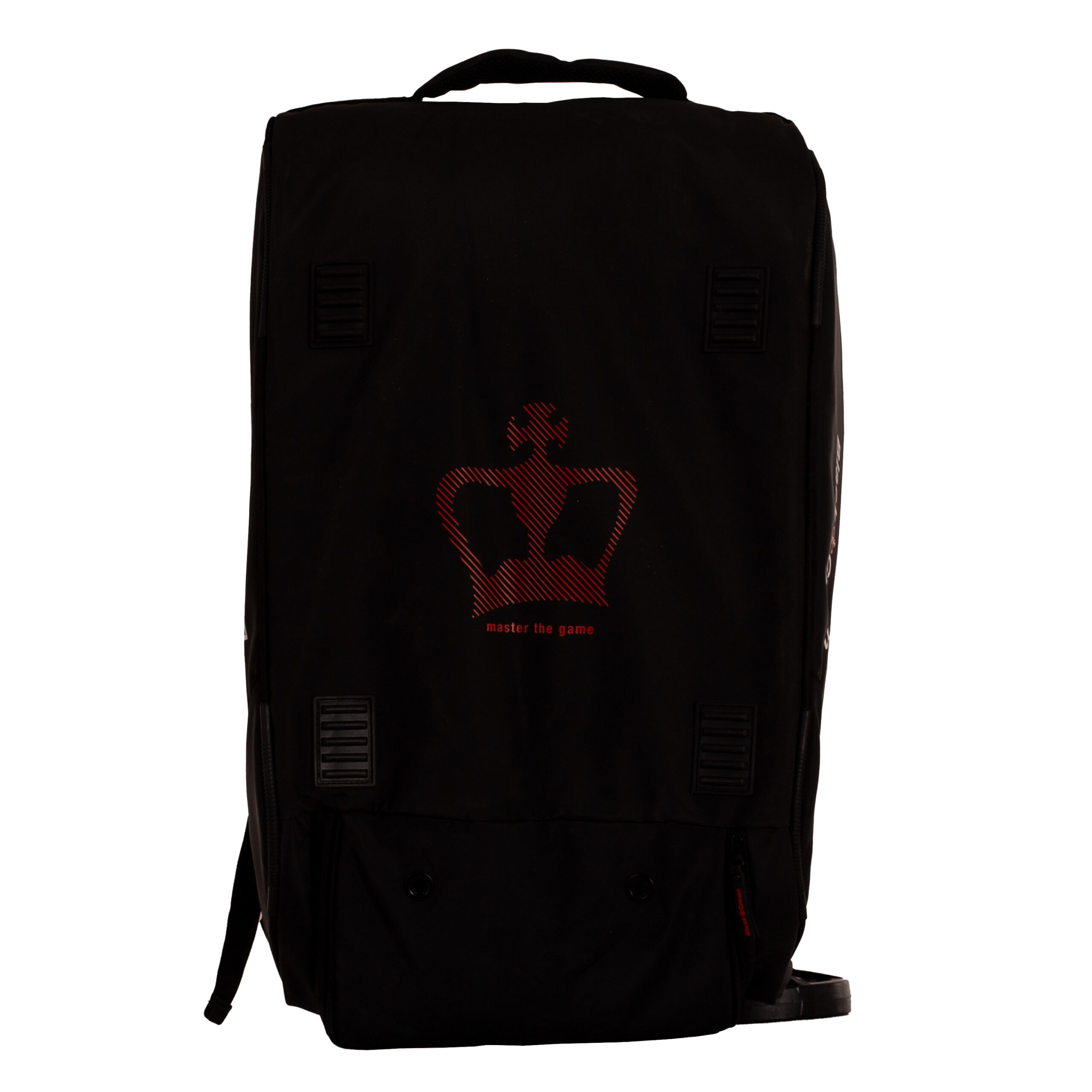 Structura spațioasă permite organizarea eficientă a rachetelor de padel, hainelor și accesoriilor. Designul negru cu detalii roșii oferă un aspect modern și sportiv.
